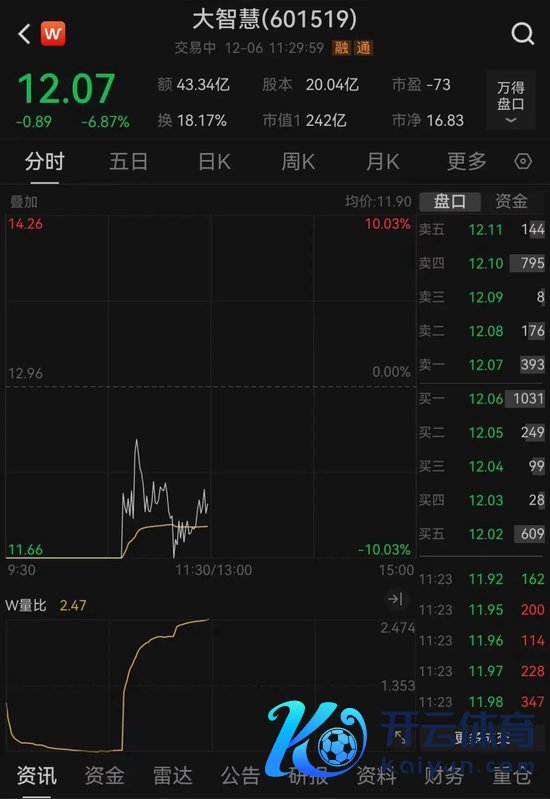 个股方面,此前走出5天4板的金融科技观点东说念主气股大聪敏早盘竞价封死跌停。盘中跌停板翻开,放胆午间收盘,跌幅减轻至6.87%。