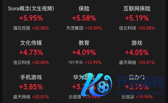 盘面上,保障观点、(sora观点)文生视频、互联网保障、文化传媒、评释、AI语料、云办公、手机游戏、房地产等板块涨幅居前,PEEK材料、电机、东说念主形机器东说念主、自动化缔造、海南自贸区、非金属材料等板块跌幅居前。