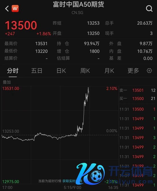 富时中国A50指数期货盘中直线拉升,一度涨超2%,放胆发稿,涨幅为1.86%。
