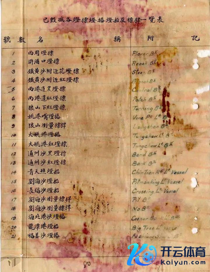 图8. 已废弃各灯标灯桩灯船及标杆一览表(皦日舰汇报附表)
