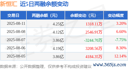 本站音问,8月11日,新恒汇(301678)融资买入1.17亿元,融资偿还1.04亿元,融资净买入1318.11万元万博manbext网站登录娱乐网,融资余额4.25亿元,近20个交当年中有15个交当年出现融资净买入。