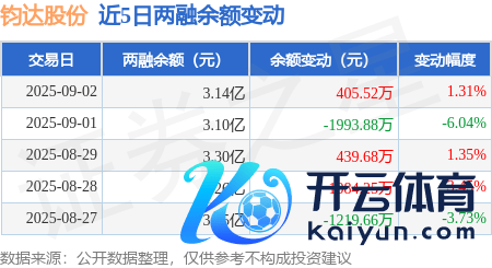 本站音尘,9月2日,钧达股份(002865)融资买入3794.34万元,融资偿还3387.82万元,融资净买入406.52万元万博manbext网站登录娱乐网,融资余额3.14亿元。