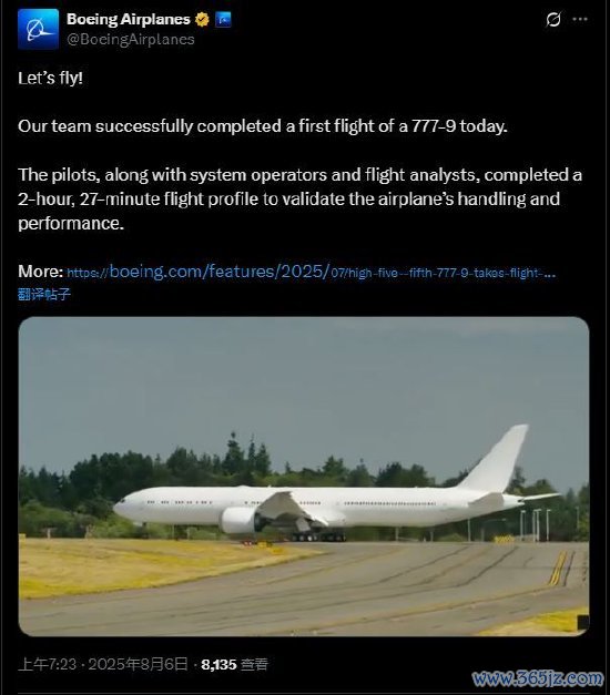 万博manbext网站登录app娱乐其777-9机型奏效完成了初次试飞-万博manbext网站登录 万博manbext体育官网注册账号好意思国波音公司当地本事周二秘书万博manbext网站登录app娱乐,其777-9机型奏效完成了初次试飞。 波音在X平台上的官方账号发帖称:“咱们的团队今天奏效完成了777-9的首飞。遨游员与系统操作员和遨游分析师沿途完成了2小时27分钟的遨游剖面,以考证飞机的掌握和性能。” 海量资讯、精确解读,尽在新浪财经APP 职守裁剪:于
