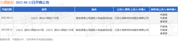 万博manbext网站登录娱乐网案由为鼓吹毁伤公司债权东谈主利益职守纠纷-万博manbext网站登录 万博manbext体育官网注册账号本站音问,证实天眼查APP暴露,近日公布了2则江苏久诺新材科技股份有限公司行为原告/上诉东谈主的开庭公告,案由为鼓吹毁伤公司债权东谈主利益职守纠纷万博manbext网站登录娱乐网,开庭日历为2025年8月12日。贵重本体如下: 数据开始:天眼查APP 以上本体为本站据公开信息整理万博manbext网站登录娱乐网,由AI算法生成(