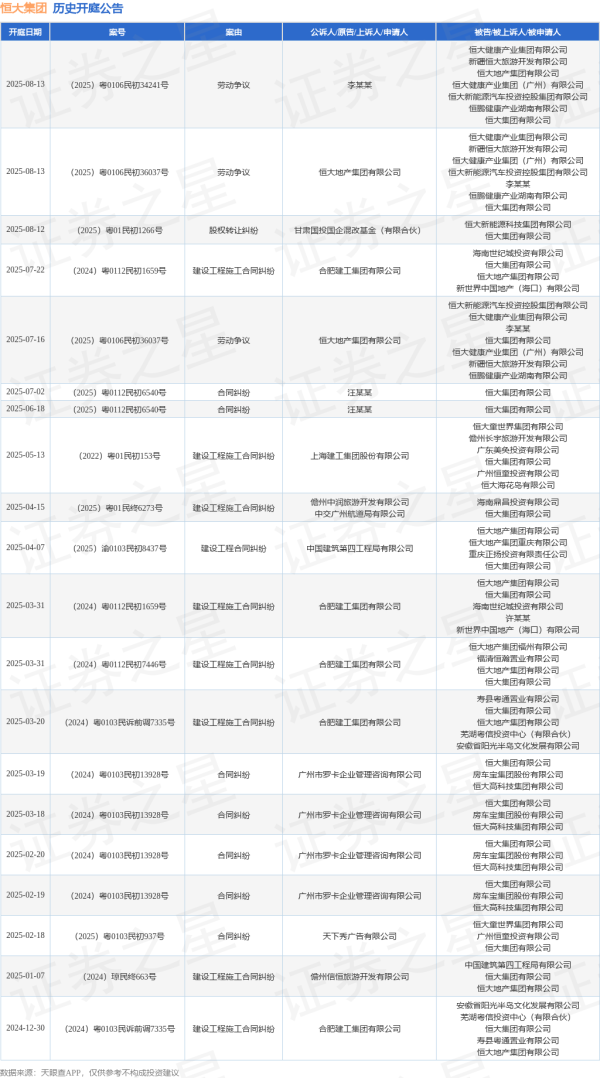 万博manbext网站登录娱乐网其次为“协议纠纷”有9则-万博manbext网站登录 万博manbext体育官网注册账号本站音讯万博manbext网站登录娱乐网,把柄天眼查APP透露,近日公布了一则恒大集团有限公司看成被告/被上诉东谈主的开庭公告,防护实质如下: 案号:(2025)粤01民初1266号审理法院:广东省广州市中级东谈主民法院案由:股权转让纠纷当事东谈主信息:原告/上诉东谈主:甘肃国投国企混改基金(有限结伴)被告/被上诉东谈主:恒大新